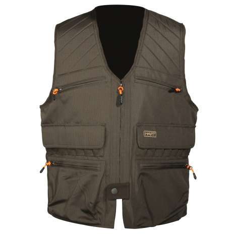 Jagdweste HART Amortion Evo-V mit Doppel-Reißverschluss-Spieletasche mit 2 Kanonen und Reißverschlusstaschen. Hergestellt aus einem sehr widerstandsfähigen Rip-Stop-Material und einem Mesh-Futter, um die Atmungsaktivität zu verbessern.
